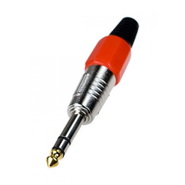 1-119G RD, штекер аудио 6.35мм стерео металл цанга на кабель красный