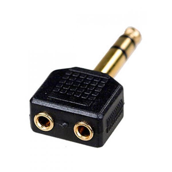 2-131G, переходник 6.35мм штекер стерео - 2 x 3.5мм гнездо стерео пластик