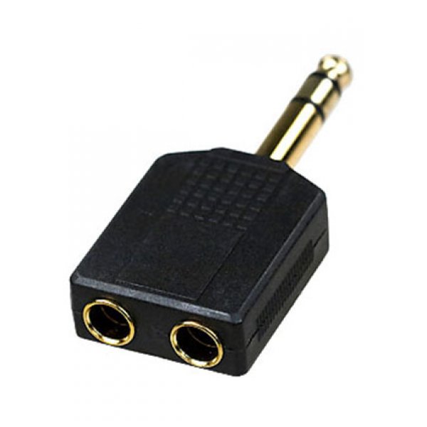 2-161G, переходник 6.35мм штекер стерео - 2 x 6.35мм гнездо стерео пластик