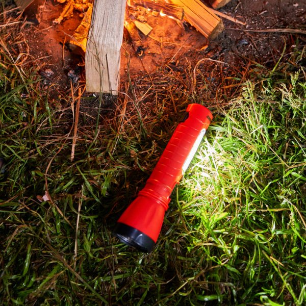Мощный фонарь REXANT с возможностью зарядки от розетки используется как поисковый и как кемпинговый фонарь с мощным боковым светом.