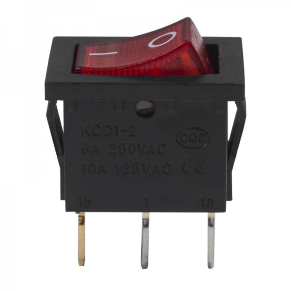 Выключатель клавишный 24V(DC) 15А (3с) ON-OFF красный с подсветкой Mini предназначен для коммутации электрических цепей напряжением 24В. Клавишные (Рокерные) выключатели применяются в качестве комплектующих изделий различного электрооборудования (в сетевых фильтрах и удлинителях, аудио-оборудовании, блоках питания, электроустановках на различных производствах, автомобилях, и многих других местах). Такой клавишный переключатель имеет два положения. Принцип действия основан на перемещении клавиши в одну из позиций. Для переключения в нужное положение требуется приложить некоторые усилия на клавишу. Монтаж осуществляется без применения винтов на плоских панелях толщиной от 0.8мм до 3мм. Подключение контактов осуществляется плоской клеммой, либо с помощью пайки.