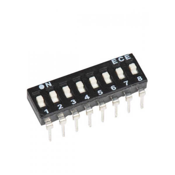 DS-08P, ADE0804, DIP переключатель 8 поз. 2.54мм 24В 100мА