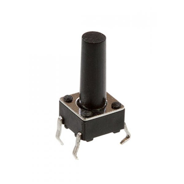 Бренд: ТайваньВысота/длина кнопки с толкателем ( до контактов), мм: 13Размер, мм: 6x6Способ монтажа: в отверстия на платуТип: прямая