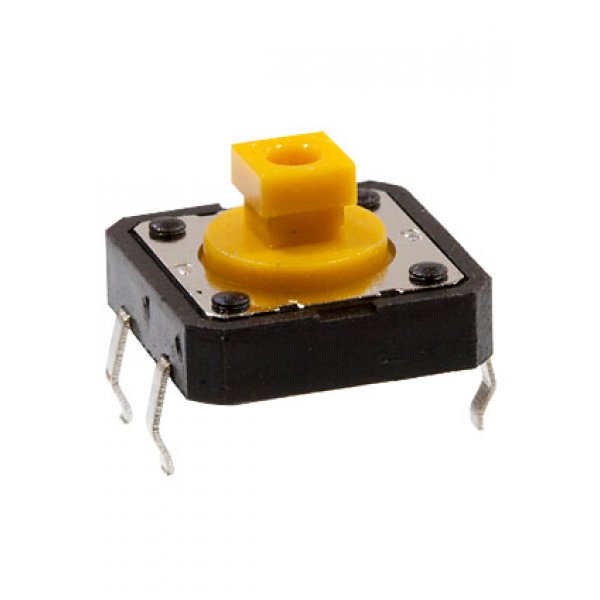 Бренд: ТайваньВысота/длина кнопки с толкателем ( до контактов), мм: 7.3Размер, мм: 12x12Способ монтажа: в отверстия на платуТип: прямая
