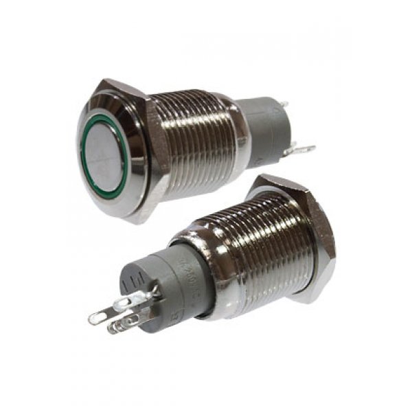 SC-984G d16 12V, Кнопка антивандальная металл 16мм 12В, фикс/подсветка зеленая