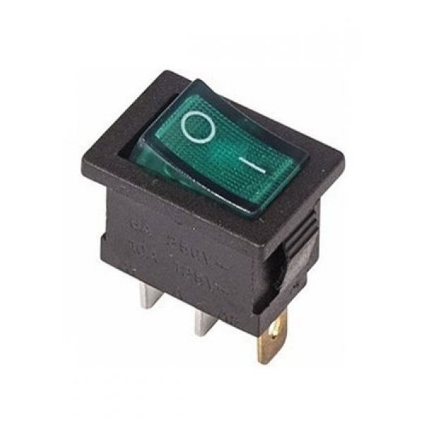 RWB-206 36-2153, выключатель клавишный 250В 6А (3с) ON-OFF зеленый с подсветкой Mini