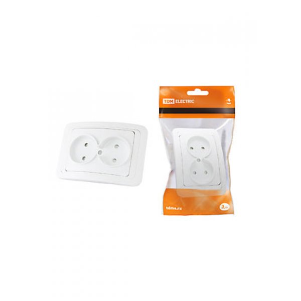 SQ1804-0025, Розетка двойная 2П 10А c защитными шторками белая "Валдай"
