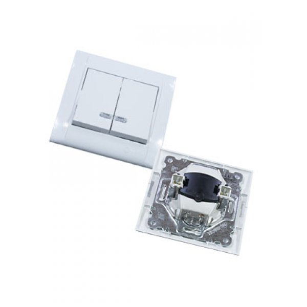 42001023, Выключатель 2 кл с подсветкой встроенный монтаж