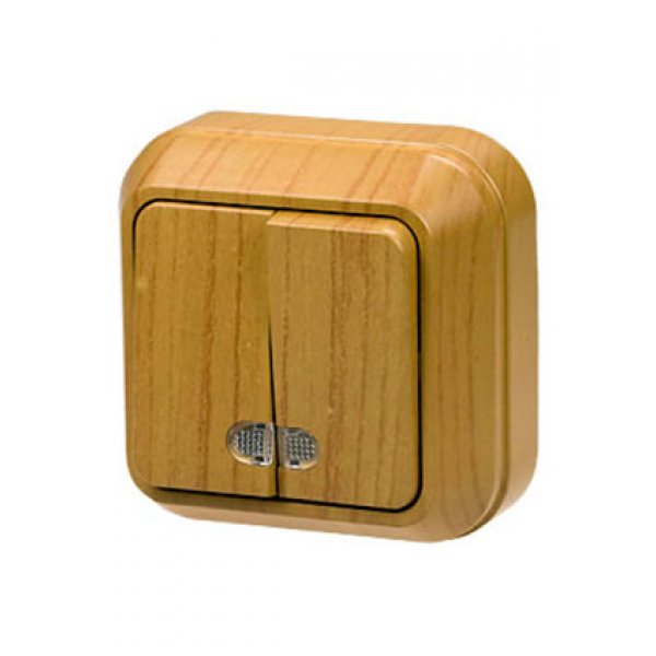 45323 ВЫКЛЮЧАТЕЛЬ ОТКР.УСТ.2 КЛ. (ДУБ) С ПОДСВЕТКОЙ