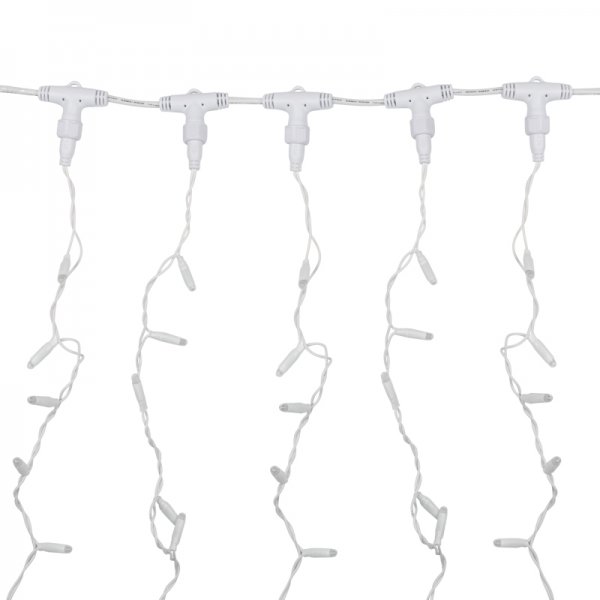Гирлянда "Светодиодный Дождь" представляет собой гибкий горизонтальный шнур-шину (2м), к которому через определенные промежутки крепятся вертикальные нити (20 шт.) со светодиодными лампами, которые отличаются от «Бахромы» тем, что имеют одинаковую, достаточно значительную длину, часто превышающую протяженность шины. На концах каждой шины есть разъем и штепсель, которые предназначены для последовательного соединения нескольких световых дождей в большой занавес ПЛЕЙ-ЛАЙТ. Используя занавес, можно не только создавать красивые световые занавесы или оформлять различные плоскости, например, фасады домов, окна и т.д., но и украшать объемные объекты.