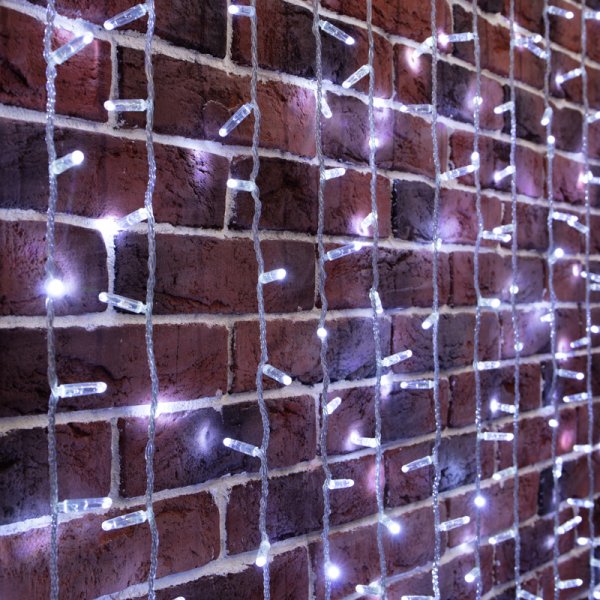 Гирлянда "Светодиодный Дождь" представляет собой гибкий горизонтальный шнур-шину (2м), к которому через определенные промежутки крепятся вертикальные нити (20 шт.) со светодиодными лампами, которые отличаются от «Бахромы» тем, что имеют одинаковую, достаточно значительную длину, часто превышающую протяженность шины. На концах каждой шины есть разъем и штепсель, которые предназначены для последовательного соединения нескольких световых дождей в большой занавес ПЛЕЙ-ЛАЙТ. Используя занавес, можно не только создавать красивые световые занавесы или оформлять различные плоскости, например, фасады домов, окна и т.д., но и украшать объемные объекты.