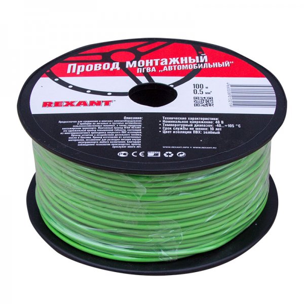Провод ПГВА REXANT предназначен для гибкого соединения автотракторного электрооборудования и приборов с номинальным напряжением до 48 В, изготавливается для автомобильной проводки и элементов питания и управления. Состоит из многожильной токопроводящей жилы с поливинилхлоридной изоляцией.