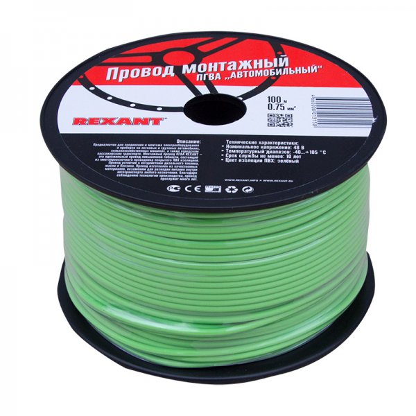 Провод ПГВА REXANT предназначен для гибкого соединения автотракторного электрооборудования и приборов с номинальным напряжением до 48 В, изготавливается для автомобильной проводки и элементов питания и управления. Состоит из многожильной токопроводящей жилы с поливинилхлоридной изоляцией.