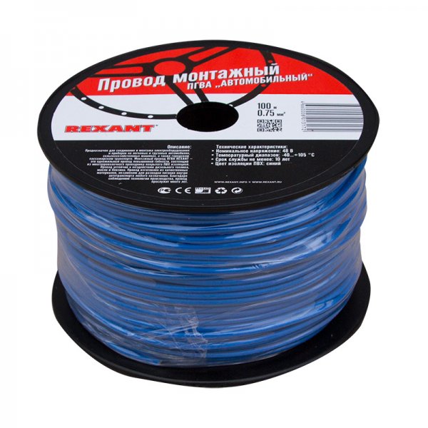 Провод ПГВА REXANT предназначен для гибкого соединения автотракторного электрооборудования и приборов с номинальным напряжением до 48 В, изготавливается для автомобильной проводки и элементов питания и управления. Состоит из многожильной токопроводящей жилы с поливинилхлоридной изоляцией.