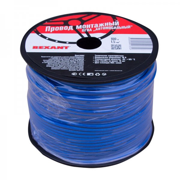 Провод ПГВА REXANT предназначен для гибкого соединения автотракторного электрооборудования и приборов с номинальным напряжением до 48 В, изготавливается для автомобильной проводки и элементов питания и управления. Состоит из многожильной токопроводящей жилы с поливинилхлоридной изоляцией.