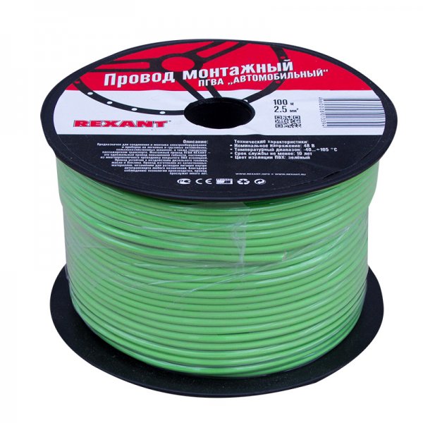 Провод ПГВА REXANT предназначен для гибкого соединения автотракторного электрооборудования и приборов с номинальным напряжением до 48 В, изготавливается для автомобильной проводки и элементов питания и управления. Состоит из многожильной токопроводящей жилы с поливинилхлоридной изоляцией.
