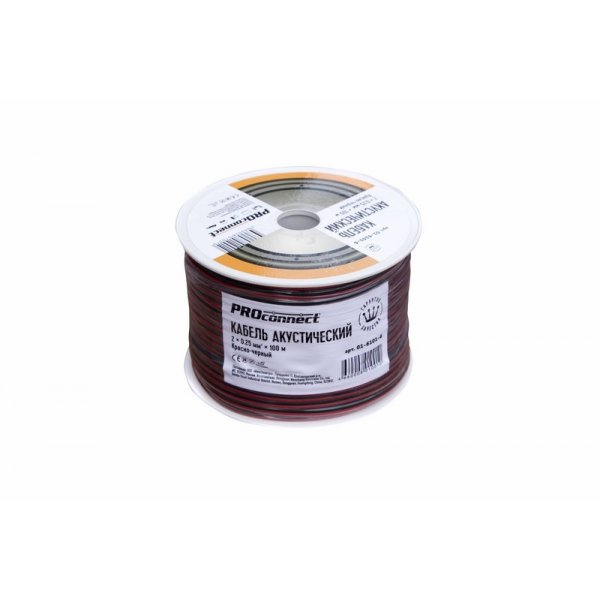 Кабель акустический 2х0,25 мм² PROconnect состоит из двух параллельных многожильных проводников в изоляции из поливинилхлоридного пластиката красного и черного цвета. Разделительное основание позволяет обеспечить разделение проводников кабеля без повреждения изоляции и оголения жил.