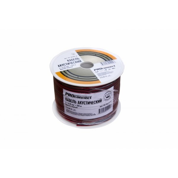 Кабель акустический 2х0,35 мм² PROconnect состоит из двух параллельных многожильных проводников в изоляции из поливинилхлоридного пластиката красного и черного цвета. Разделительное основание позволяет обеспечить разделение проводников кабеля без повреждения изоляции и оголения жил.