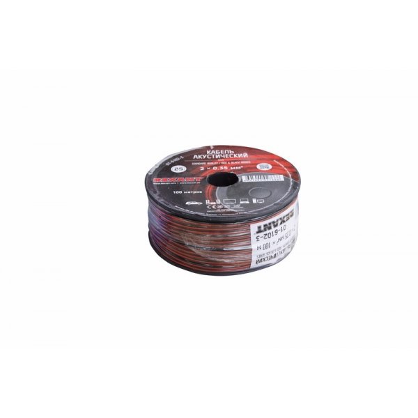 Акустический кабель применяется для подключения звуковых систем и является важным элементом для передачи аудиосигнала. Качественный акустический кабель торговой марки REXANT — залог отличного звука домашней или автомобильной аудиоаппаратуры. Высокое качество изготовления и широкая область применения отличает акустический кабель торговой марки REXANT. Отличное сочетание цены и качества этой продукции порадует любого аудиолюбителя, цель которого — получить чистый звук по выгодной цене. Акустический кабель 2х0,35 мм² REXANT состоит из двух параллельных многожильных проводников в изоляции из поливинилхлоридного пластиката красного и черного цвета. Разделительное основание позволяет обеспечить разделение проводников кабеля без повреждения изоляции и оголения жил.