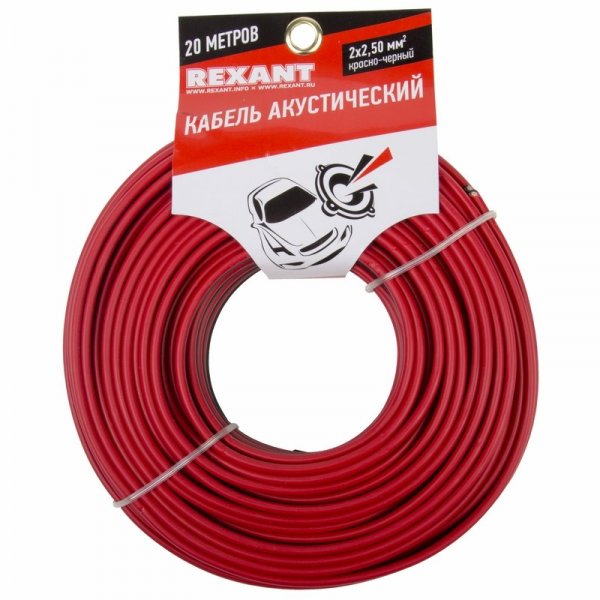 Акустический кабель применяется для подключения звуковых систем и является важным элементом для передачи аудиосигнала. Качественный акустический кабель торговой марки REXANT — залог отличного звука домашней или автомобильной аудиоаппаратуры. Высокое качество изготовления и широкая область применения отличает акустический кабель торговой марки REXANT. Отличное сочетание цены и качества этой продукции порадует любого аудиолюбителя, цель которого — получить чистый звук по выгодной цене. Акустический кабель 2х2,50 мм² REXANT состоит из двух параллельных многожильных проводников в изоляции из поливинилхлоридного пластиката красного и черного цвета. Разделительное основание позволяет обеспечить разделение проводников кабеля без повреждения изоляции и оголения жил.