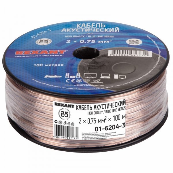 Качественный акустический кабель торговой марки REXANT — залог отличного звука домашней или автомобильной аудиоаппаратуры. Высокое качество изготовления и широкая область применения отличает акустический кабель торговой марки REXANT. Отличное сочетание цены и качества этой продукции порадует любого аудиолюбителя, цель которого — получить чистый звук по выгодной цене.
