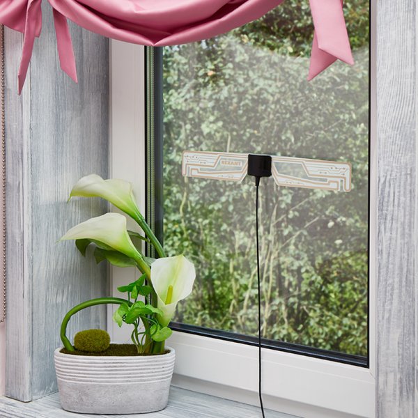 Антенна активная (со встроенным усилителем), комнатной установки, предназначена для приема цифрового эфирного ТВ вещания в стандарте DVB-T2.
