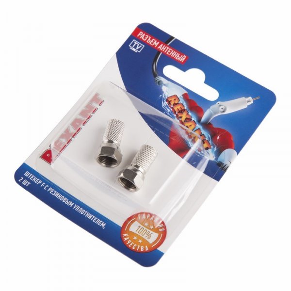 F-коннектор изготовлен из никелированного сплава меди (биметалл) и имеет резиновый уплотнитель, который убережет от попадания влаги в контактные соединения.
