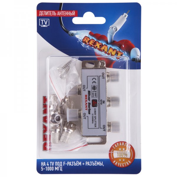 Делитель антенный F-типа на 4 TV + F-разъемы, 5-1000 МГц REXANT
