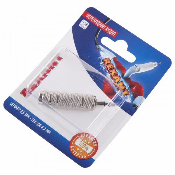 Переходник штекер 3.5мм стерео - гнездо 6.3мм стерео (металл) предназначен для передачи аналогового стерео аудиосигнала идущего от кабеля на аудио оборудование с переходом на другой тип разъема. С одной стороны адаптера располагается штекер разъема 3.5мм Stereo, а с другой гнездо разъема 6.3мм Stereo. Такой переходник используется для совместной эксплуатации домашней и профессиональной аудиоаппаратуры имеющей разъемы разного типа. Корпус адаптера изготовлен из никелированного металла.