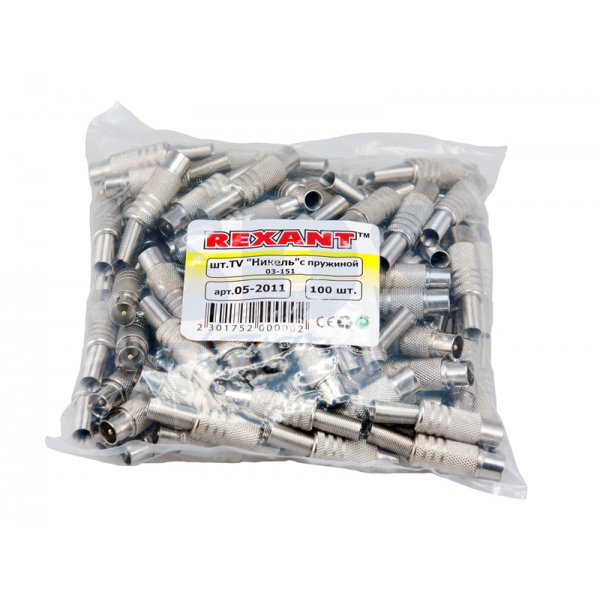 Никелированный разъем REXANT штекер TV с пружиной предназначен для подключения эфирного, спутникового и кабельного телевидения с помощью радиочастотного кабеля.