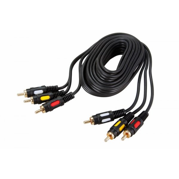 Шнур 3 RCA Plug - 3 RCA Plug 1.5 м (GOLD) REXANT предназначен для передачи аналогового видео- и аудиосигнала (STEREO) и широко применяется для профессиональных теле- и аудиосистем. С обеих сторон шнура располагаются по три штекера разъема RCA (традиционный стандарт для аналоговой видео- и аудиотехники).