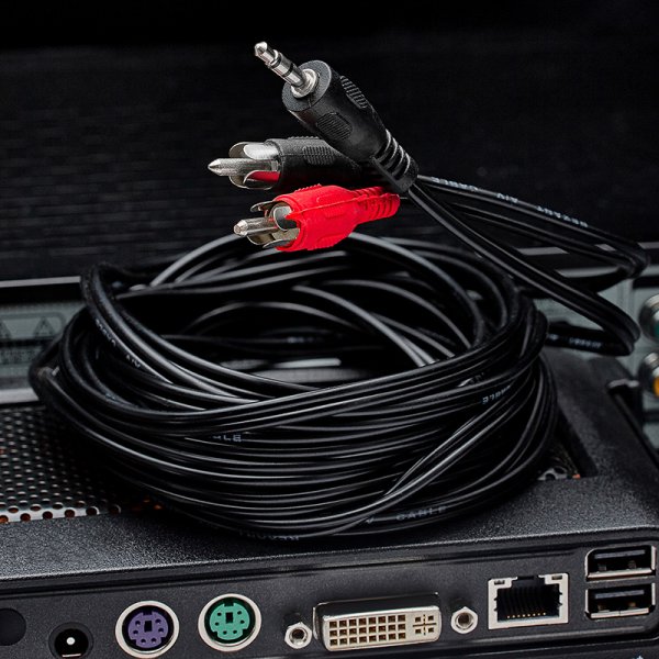 Шнур REXANT 3.5 мм стерео штекер - 2 RCA предназначен для передачи аналогового аудиосигнала и широко применяется в любых акустических системах.