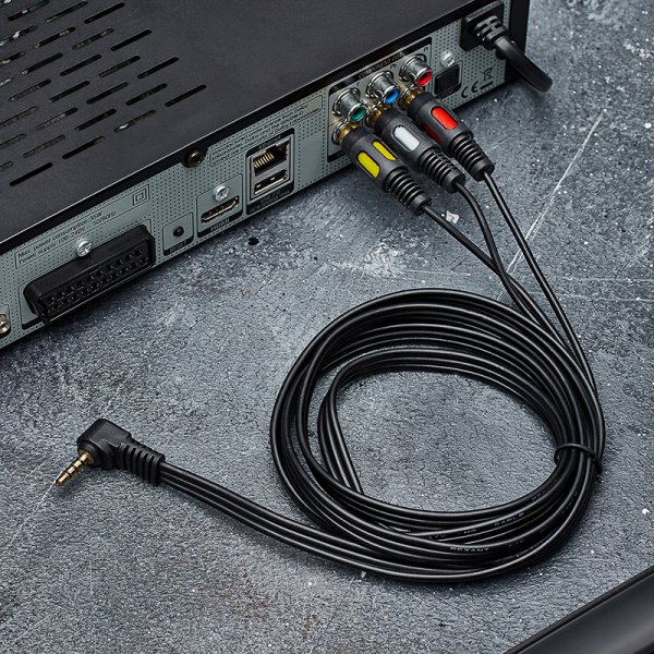 Шнур 3.5мм 4C Plug - 3 RCA Plug 1.5 м (GOLD) REXANT предназначен для передачи аналогового видео- и аудиосигнала и широко применяется для видео- и аудиосистем. С одной стороны шнура располагается угловой штекер разъема 3.5 мм 4C Plug, а с другой — 3 штекера разъема RCA (традиционный стандарт для аналоговой видео и аудиотехники).