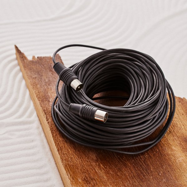 TV удлинитель 25 м TV штекер - TV гнездо REXANT предназначен для передачи аналоговых аудио- и видеосигнала телевизионной сети к телевизору при подключении к телевизионной розетке, для подключения различного телекоммуникационного оборудования (ресиверы, ТВ-приставки и т. д.). Его также можно используют в качестве удлинителя высокочастотного кабеля для передачи ТВ сигнала от телевизионной антенны. C одной стороны шнура располагается штекер TV разъема, с другой — гнездо TV разъема.