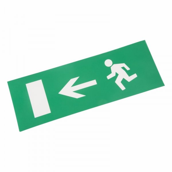 Наклейка для прозрачного аварийного светильника Арт 74-0001, размером 120*320мм. Наклейка выполнена из литой цветной пленки, которая имеет долгий срок службы и защиту от выцветания.
