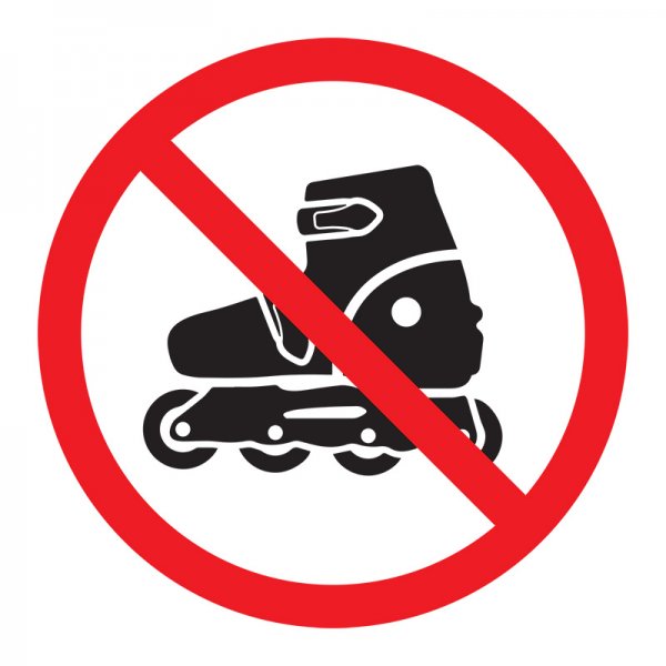 Запрещающий знак (наклейка) «На роликах не заходить» предназначен для размещения на входных дверях, стенах или заграждениях и информирует о том, что на данной территории или объекте запрещено находиться на роликовых коньках.