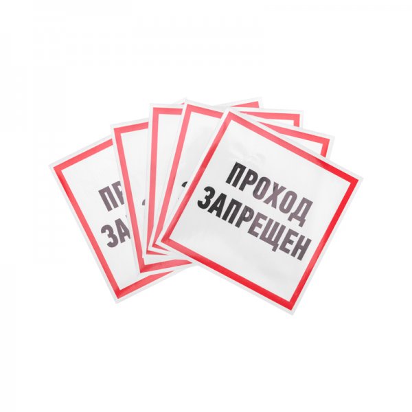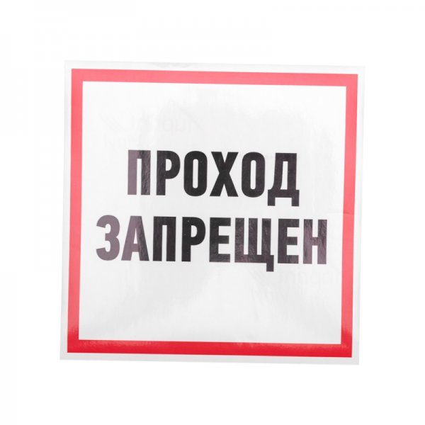 Знак информационный (наклейка) "Проход запрещен!" предназначен для размещения на ограждениях, дверях и стенах помещений. Информирует о том, что на данную территорию или объект проходить запрещено.