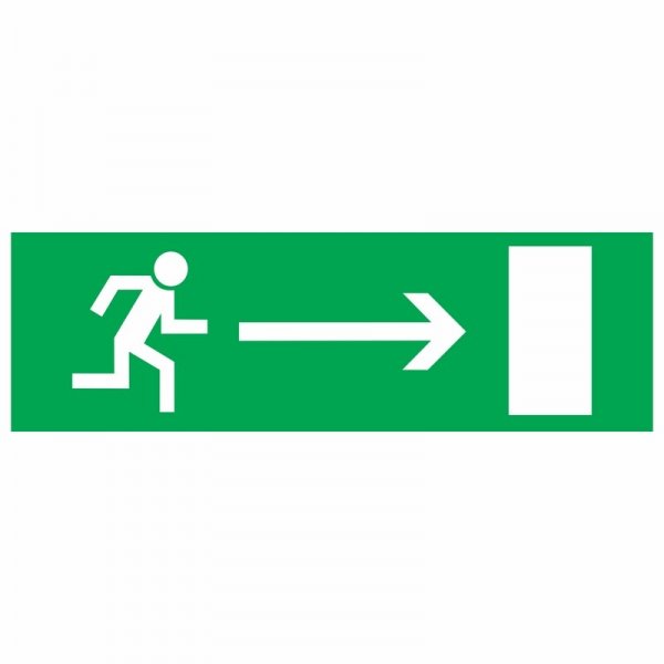 Знак (наклейка) эвакуационный "Направление к выходу направо", как правило, размещается над дверями запасного эвакуационного выхода или в составе комбинированных знаков безопасности для указания направления движения к эвакуационному выходу. Такие наклейки предназначены для своевременного информирования окружающих о путях и методах эвакуации при возникновении чрезвычайных ситуаций. Они обязательны к размещению на предприятиях, в учреждениях, общественных зданиях и сооружениях.