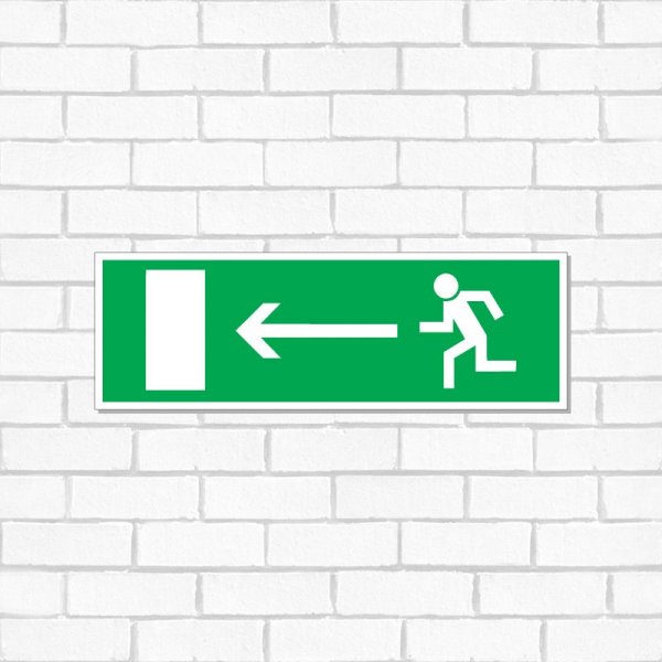 Знак эвакуационный (табличка на ПВХ подложке) указатель направление движения «Направление к выходу налево», как правило, размещается на стенах и ограждениях. Знак используется самостоятельно или в составе комбинированных знаков безопасности для указания направления движения к выходу/входу. Такие таблички предназначены для своевременного информирования окружающих о путях выхода/входа, о путях экстренной эвакуации при возникновении чрезвычайных ситуаций. Они обязательны к размещению на предприятиях, в учреждениях, общественных зданиях и сооружениях.