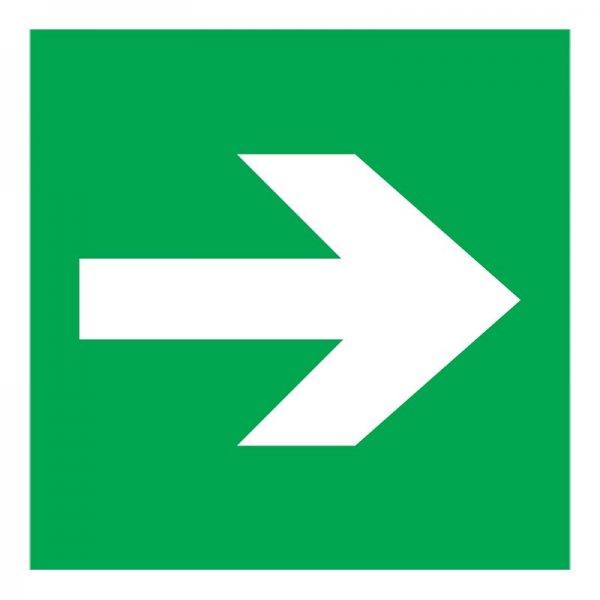 Знак эвакуационный (табличка на ПВХ подложке) указатель направление движения «Направляющая стрелка», как правило, размещается на стенах и ограждениях. Знак используется самостоятельно или в составе комбинированных знаков безопасности для указания направления движения к выходу/входу. Такие таблички предназначены для своевременного информирования окружающих о путях выхода/входа, о путях экстренной эвакуации при возникновении чрезвычайных ситуаций. Они обязательны к размещению на предприятиях, в учреждениях, общественных зданиях и сооружениях.