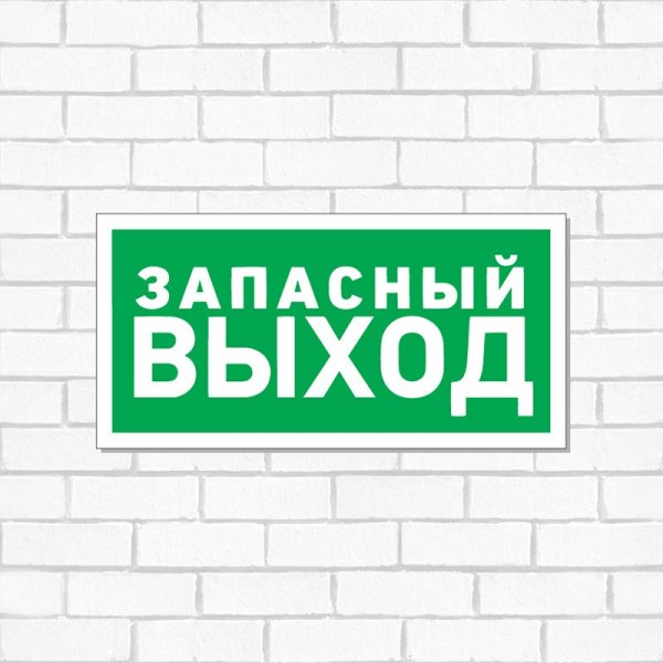 Знак эвакуационный (табличка на ПВХ подложке) «Запасный выход», как правило, размещается над дверями запасного эвакуационного выхода или в составе комбинированных знаков безопасности для указания направления движения к эвакуационному выходу. Такие таблички предназначены для своевременного информирования окружающих о путях и методах эвакуации при возникновении чрезвычайных ситуаций. Они обязательны к размещению на предприятиях, в учреждениях, общественных зданиях и сооружениях.