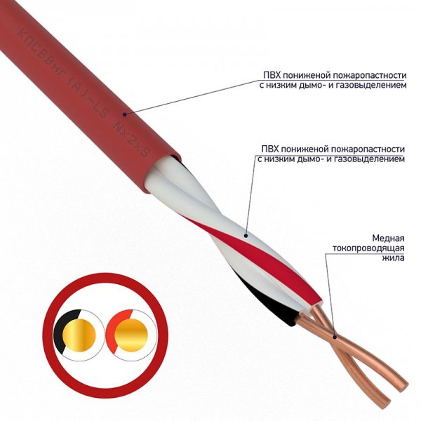 Изоляция: поливинилхлоридный пластикат пониженной пожароопасности с низким дымо- и газовыделением