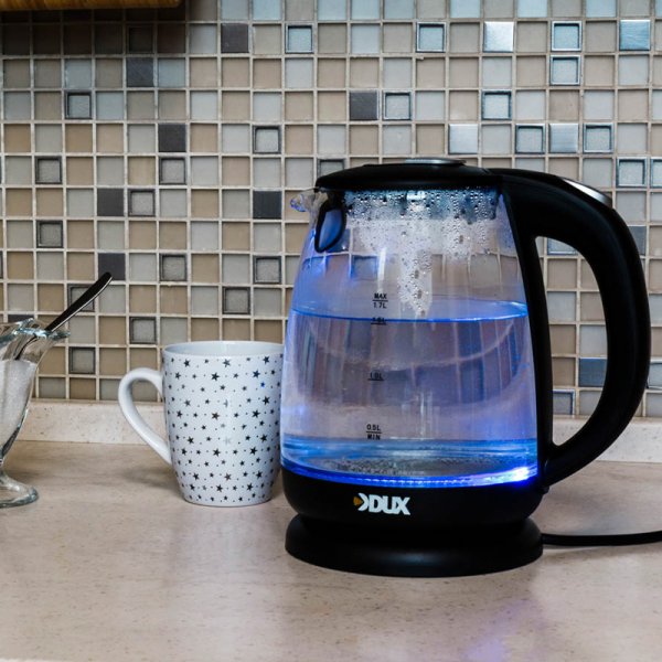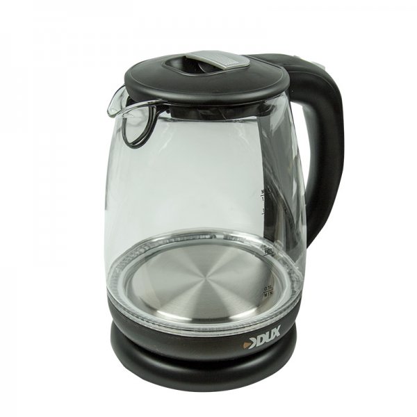 Чайник электрический. Модель DX-1258В. Корпус выполнен из боросиликатного стекла. Внутренняя LED подсветка. Фиксирующаяся крышка. Мощность 2200Вт. Объем 1,7 литра. Тип нагревательного элемента -закрытая спираль, блокировка включения без воды, автоотключение при закипании.