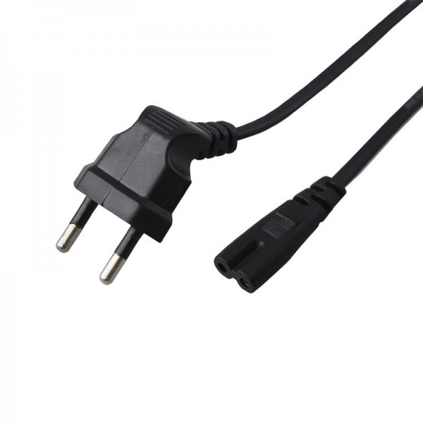 Шнур сетевой (угловая вилка) 2x0.5 мм² 1.5 м REXANT предназначен для подключения к сети переменного тока (AC) с напряжением 220 B аудио- и видеоаппаратуры, источников питания ноутбуков, игровых консолей и других приборов, имеющих штыревой сетевой разъем типа С8 (известен из-за его формы как «восьмерка»). Данный сетевой шнур (IEC cord) состоит из двухжильного провода с сечением жил 0.5 мм², с одной стороны угловой литой плоской вилки (евро) и с другой — литого гнездового неполяризованного разъема типа C7 (евроразъем).