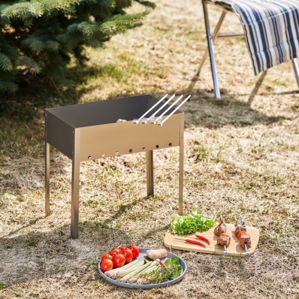 Мангал сборный "ЭКОНОМ" в пленке с шампурами. Размер 400*250*400мм. Толщина листов 0,5мм. В комплекте 6 угловых шампуров размером 370*10*0,8мм.