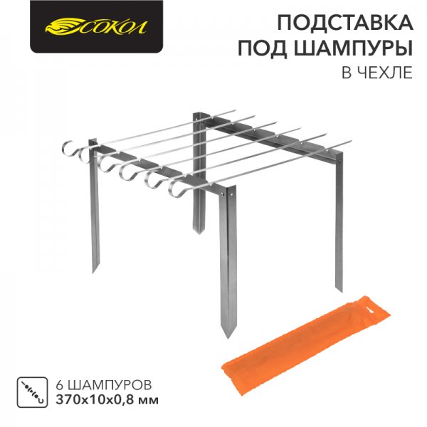 Подставка под шампура с 6 шампурами в чехле СОКОЛ