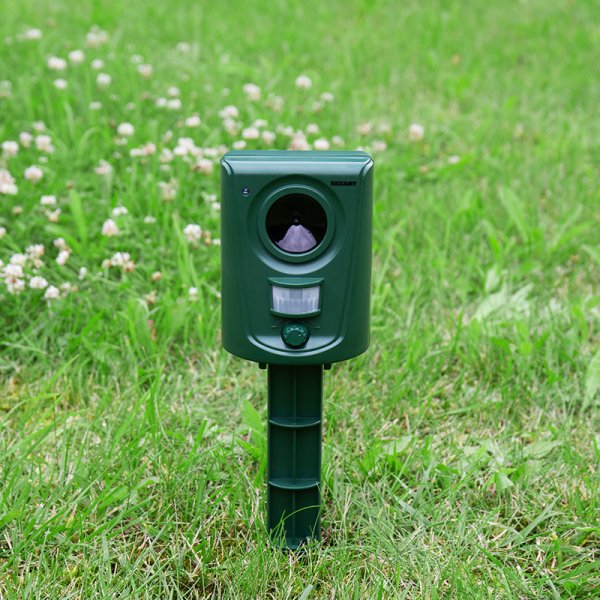 В комплекте с устройством идёт подставка для установки отпугивателя в грунт, а так же крепеж для подвешивания на стену. Для использования внутри помещений и на улице.