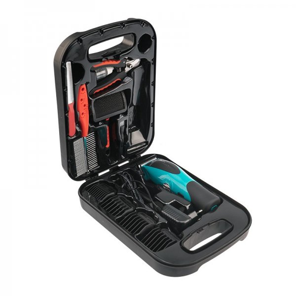 Комплектация: машинка, 4 насадки-гребня (3 мм, 6 мм, 9 мм, 12 мм), защитный кожух для лезвия, ножницы для стрижки когтей животных, щетка для удаления колтунов, пилка для когтей, двусторонний гребень, масло смазочное, щеточка для очистки лезвий, кейс, диск обучающий, гарантия, инструкция