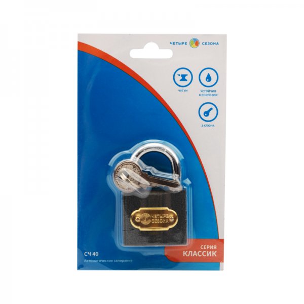 Навесной замок ЧЕТЫРЕ СЕЗОНА идеально подходит для защиты вашего имущества от непрошенных гостей. Замок пригодится для запирания гаражных ворот, распределительных щитков, складов и других объектов.