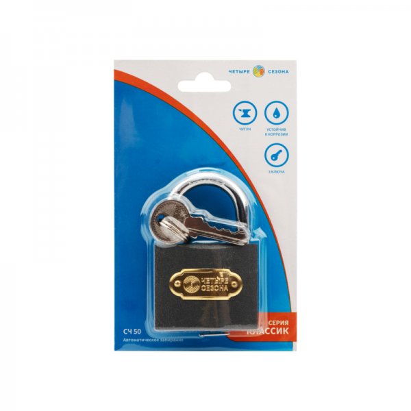 Навесной замок ЧЕТЫРЕ СЕЗОНА идеально подходит для защиты вашего имущества от непрошенных гостей. Замок пригодится для запирания гаражных ворот, распределительных щитков, складов и других объектов.